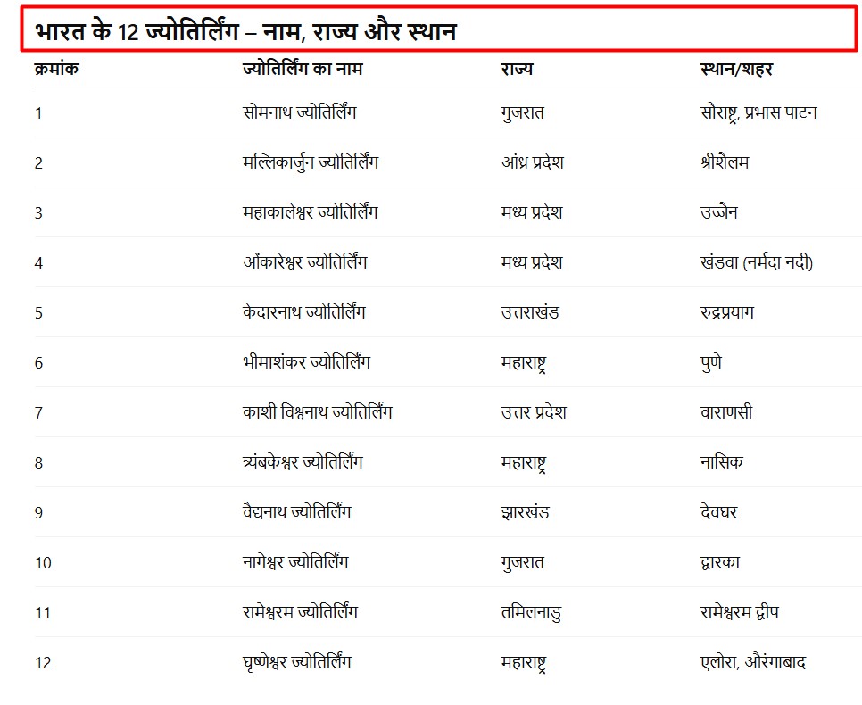 भारत के 12 ज्योतिर्लिंग कहाँ हैं? | Bharat ke 12 Jyotirlinga in Hindi